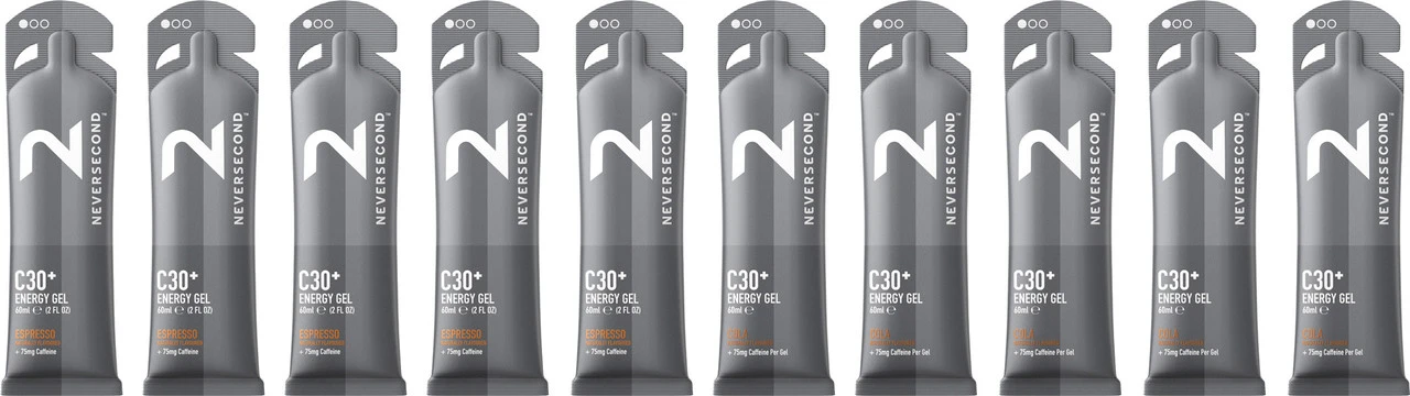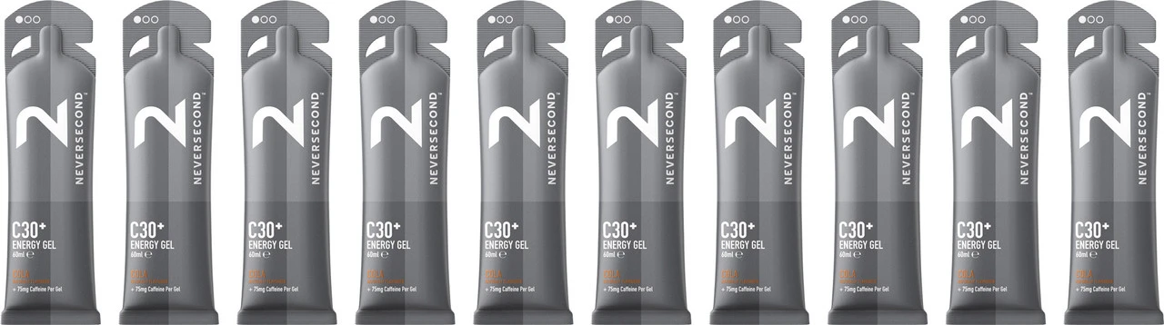 NeverSecond C30+ Energy Gel im 10er-Pack – schnell verfügbare Kohlenhydrate plus Koffein