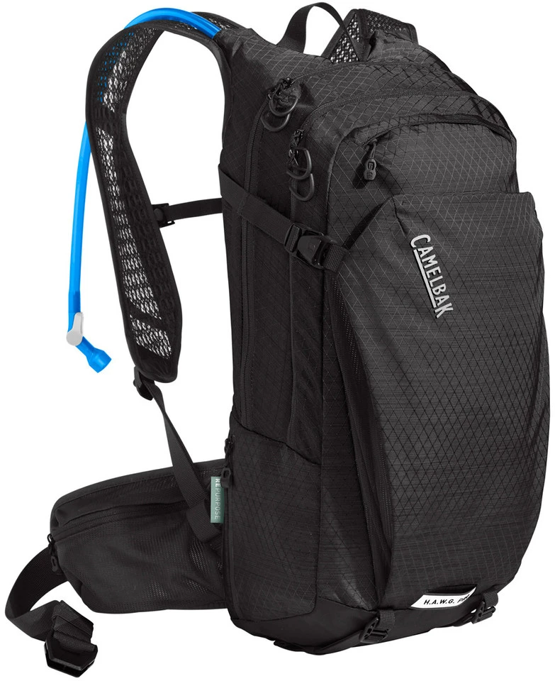Camelbak gibt Dir mit dem H.A.W.G. Pro 20 einen Trinkrucksack, der Dich nicht nur mit Flüssigkeit versorgt, sondern auch mit 17 Liter Packvolumen jede Menge Platz und Verstaumöglichkeiten für Deine Ausrüstung bietet. Und trotzdem trägt er sich extrem bequem und stabil. Wenn Du außerdem noch sicherer auf dem Bike sein möchtest, hat der H.A.W.G. Pro 20 ein Extrafach für die Integration eines Rückenprotektors.