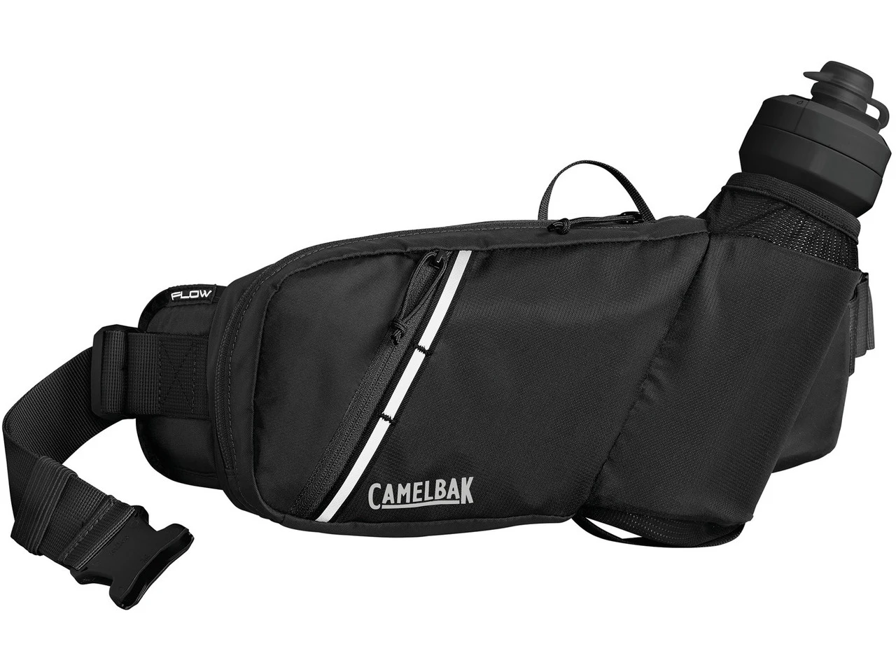 Der Camelbak Podium® Flow™ Belt aus der Bike Minimalism Collection bietet neben zwei Litern Packvolumen Platz für eine Podium Dirt 620 ml Trinkflasche.