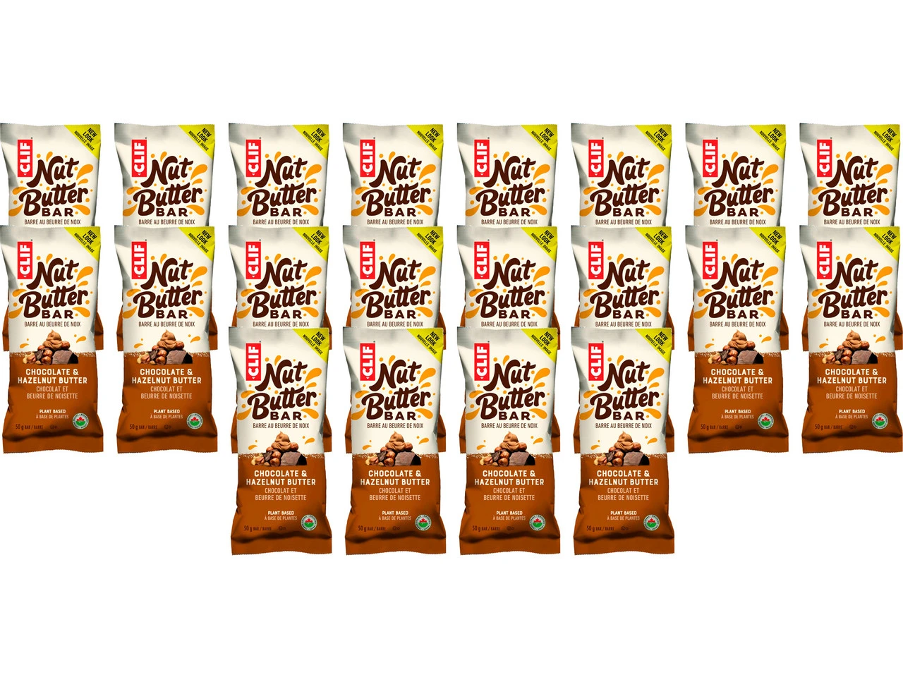 8 x Riegel CLIF Bar Nut Butter Filled, Nettofüllmenge 400 g, peanut butter7 x Riegel CLIF Bar Nut Butter Filled, Nettofüllmenge 350 g, chocolate peanut butter5 x Riegel CLIF Bar Nut Butter Filled, Nettofüllmenge 250 g, chocolate hazelnut