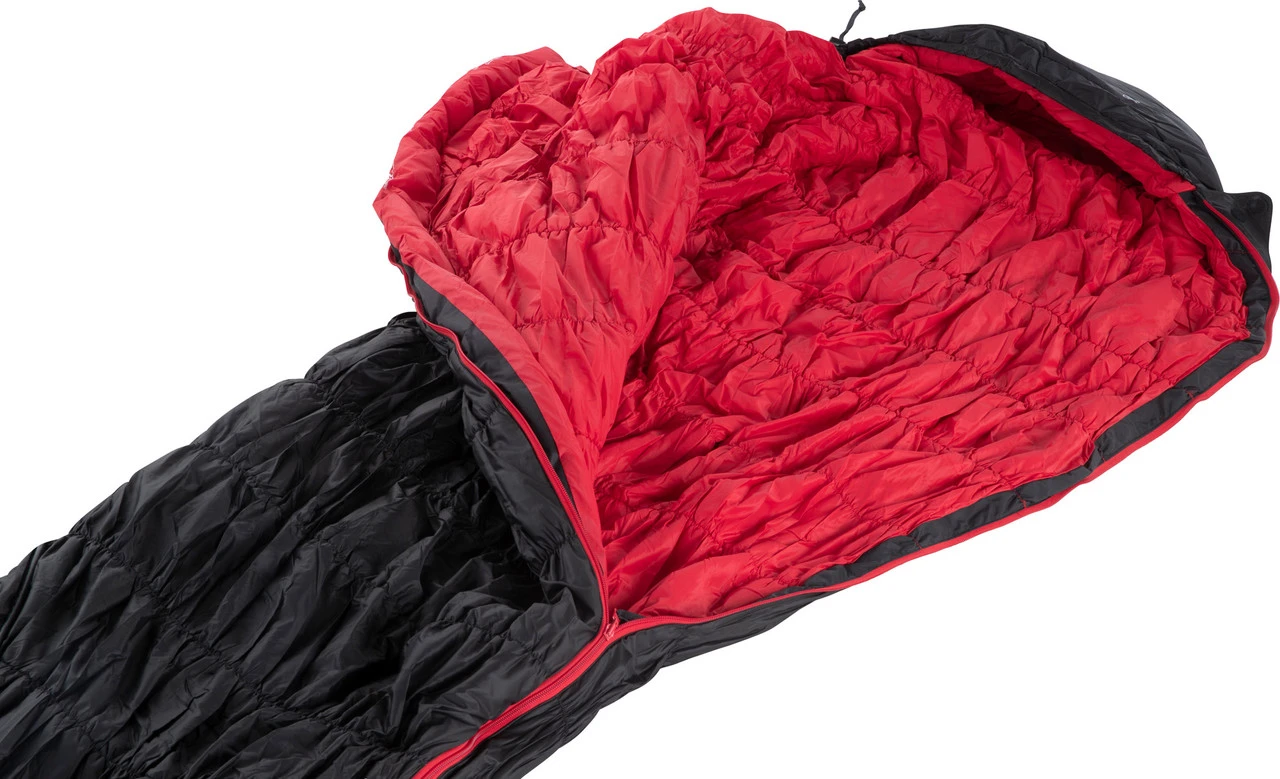 Elastische Kammernähte erzielen zu eine äußerst dehnbaren Mumienform. Das führt zu einem besseren Wärme- und Gewichtsverhältnis. Außerdem ist diese Konstruktion um bis zu 25 % in der Breite dehnbar, was für einen hohen Schlafkomfort sorgt.