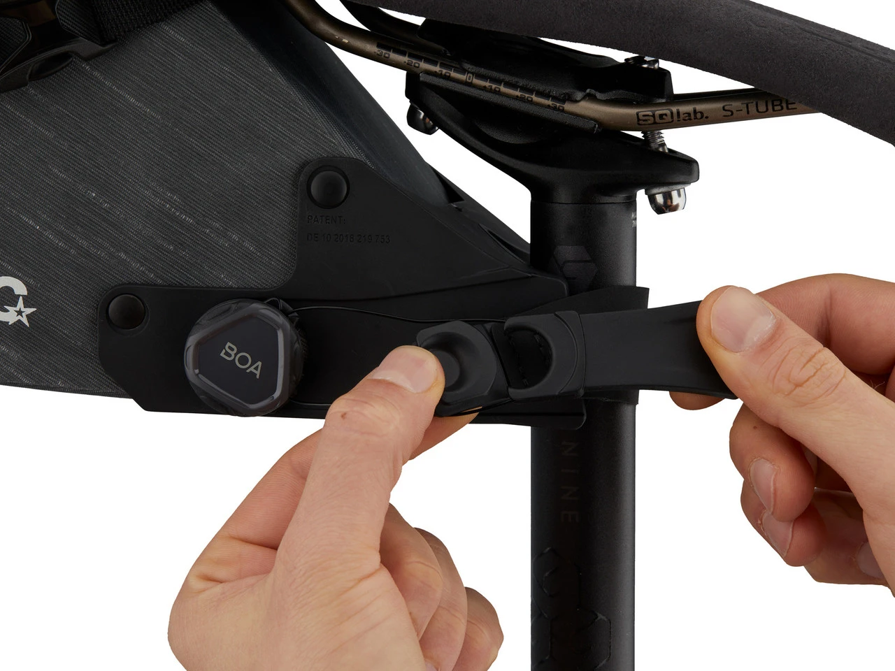 Das BOA-Fit-System steht für ein einfaches, schnelles und präzises Handling der Taschenhalterung und verspricht zuverlässigen, ruckelfreien Halt. Zum Befestigen hängst Du den oder die Haken ein und drehst über das Drehrad den Verschluss stufenlos fest. Zum Lösen hebst Du das Drehrad kurz an und öffnest die Haken.
