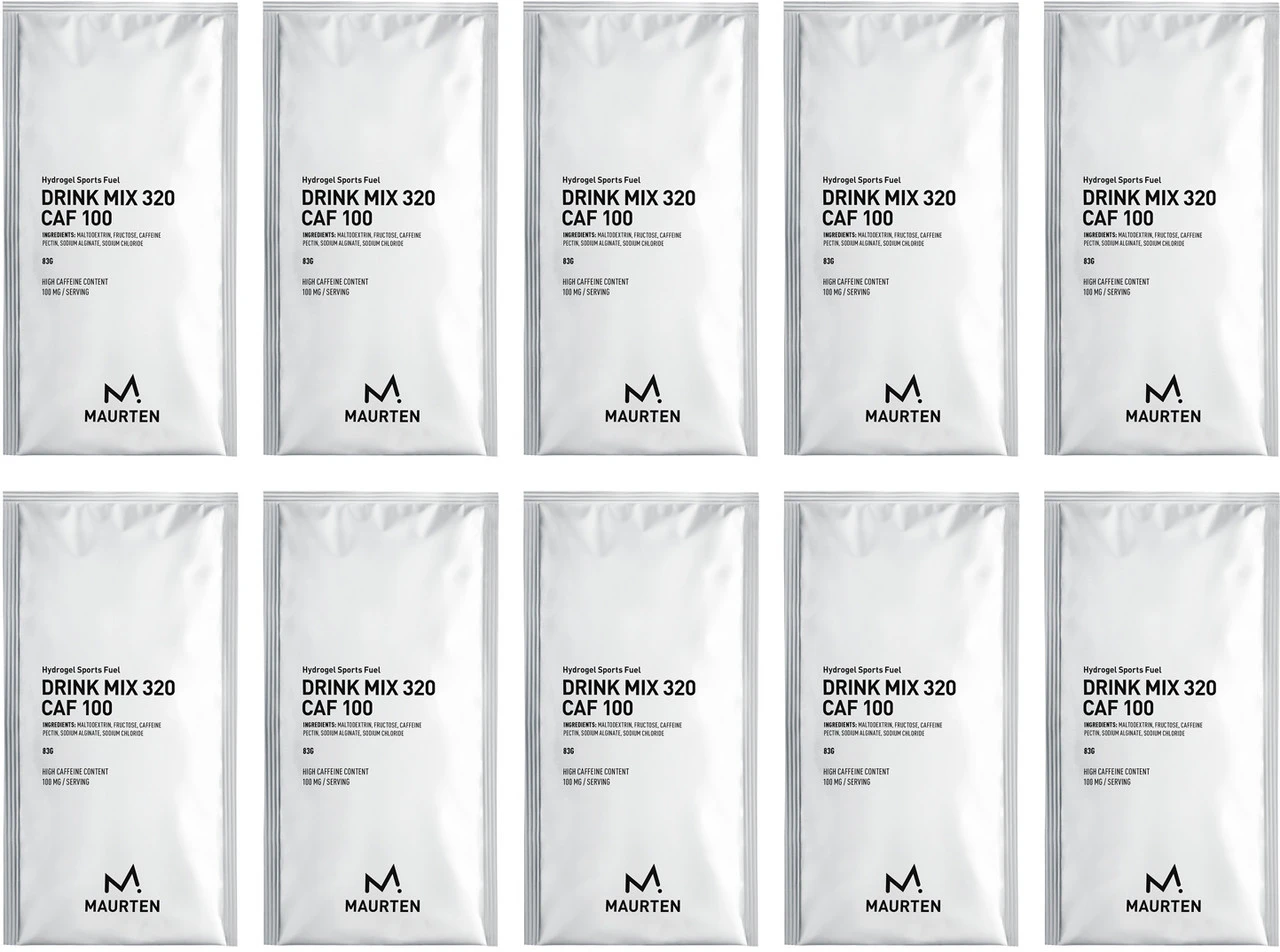 Das Drink Mix 320 CAF 100 Getränkepulver von Maurten liefert Dir 100 mg Koffein auf 500 ml und versorgt Dich zusätzlich mit nahezu 80 g Kohlenhydraten. Dieser kohlenhydratreiche Drink kann dank durch Hydrogel eingekapselte Kohlenhydrate ohne Magenbeschwerden vom Körper aufgenommen werden. Auf Geschmacks- und Konservierungsstoffe wird bewusst verzichtet. Es werden rein natürliche Zutaten verwendet.