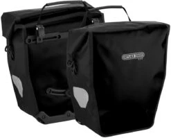 Das Quick-Lock 1-System ist ORTLIEBs erstes Halterungssystem für Fahrradtaschen, das mit nur einer Hand am Gepäckträger eingehängt und wieder abgenommen werden kann. Durch Anheben der Tasche am Griff können die Haken automatisch ver- und entriegelt werden. Dabei öffnen sich beim Anheben am Griff die Haken auf der Taschenrückseite, um sie am Gepäckträger einzuhängen. Sobald man den Griff wieder loslässt, umschließen die Haken das Gepäckträgerrohr. Um das System optimal anzupassen und ein hin- und her Rutschen zu verhindern, ist es durch Reduzierstücke in verschiedenen Größen individuell für Gepäckträger mit einem Rohrdurchmesser von 8 bis 16 mm einstellbar. Mit Hilfe eines Innensechskants der Größe 3 können die Haken justiert werden. Der untere Schiebehaken der Tasche ist für die Sicherung des unteren Taschenbereichs zuständig, indem dieser eine vertikale Gepäckträgerstrebe umschließt. Je nach Gepäckträgerhöhe kann die elliptische Schiene nach oben gedreht werden. Dabei ist der untere Haken sowohl horizontal als auch vertikal auf einer halbelliptischen Schiene verstellbar und in 15-Grad-Schritten drehbar.