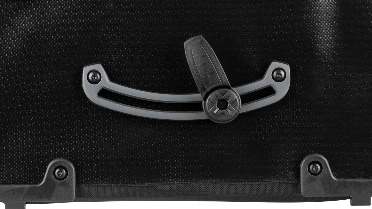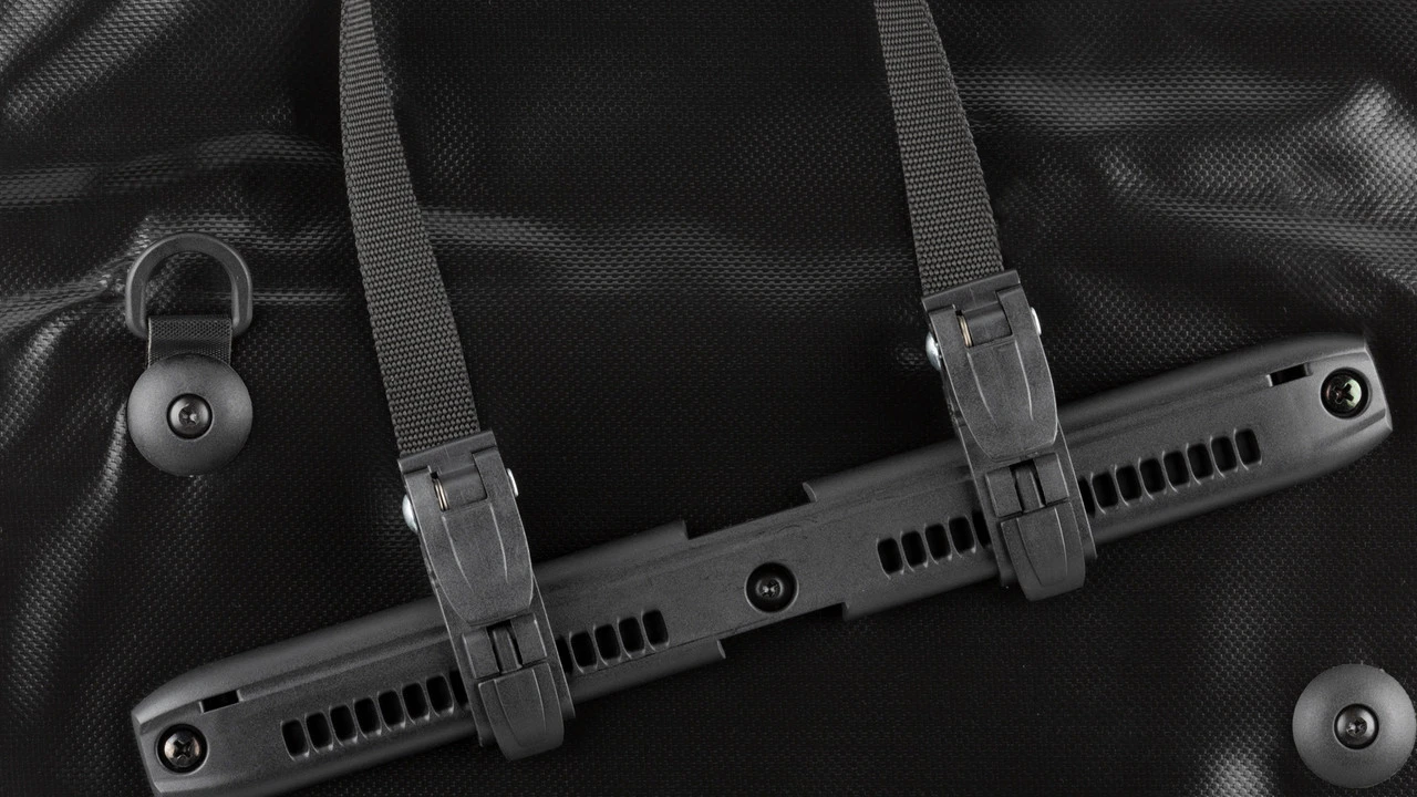 Das Quick-Lock2.1-Halterungssystem basiert auf dem bewährten Quick-Lock2-System, bietet jedoch einige Verbesserungen. Die obere Schiene, in der auch die optionale Diebstahlsicherung angebracht werden kann, ist einteilig ausgeführt, was ein Plus an Stabilität mit sich bringt. Auf der Innenseite kommen besonders flache Unterlegscheiben zum Einsatz, so wird der Tascheninhalt durch diese kaum beeinträchtigt. Der Taschengriff dient als Riegel: Hebst Du den Griff an, öffnen sich die Halterungshaken, lässt Du ihn los, schließen sie sich. Die Reduzierstücke für unterschiedliche Rohrdurchmesser werden seitlich eingeschoben und bleiben so sicher an Ort und Stelle. Zusätzlich zu den serienmäßig mitgelieferten 16 mm Grundhaken mit Reduzierstücken in 8 und 10 mm, liegen nun auch 12 mm Einsätze bei. Optional erhältlich ist zudem ein 20 mm Reduzierstück, passend für den Gepäckträger mit großem Rohrdurchmesser, wie sie teilweise an E-Bikes verbaut sind. Der Zwei-Komponenten-Kunststoff mit Anti-Scratch-Funktion, der für die untere Schiene in Form einer Halbellipse verwendet wird, sorgt für weiche Auflageflächen und reduziert die Reibung am Gepäckträger. Der untere Haken kann variabel angepasst und in 15-Grad-Schritten gedreht werden. Die Handhabung ist denkbar einfach: Für die Einstellung der Haken wird kein Werkzeug benötigt.