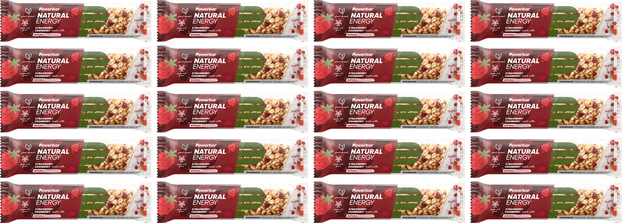 Vollkornhaferflocken* (34 %), Glukose-Fruktose-Sirup, Maltodextrin*, Vollkorncrispies (11 %) [Vollkornweizenmehl*, Reismehl*, Zucker*, Gerstenmalzmehl*, Salz, Rapsöl*, Säureregulator (Calciumcarbonat), Emulgator (Sojalecithine)], kandierte Cranberries* (9 %) (Zucker*, Cranberries*, Reismehl*, Sonnenblumenöl*), Palmfett*, Erdbeeren* (3 %), Sojabohnen*, Magnesiumcitrat, Zitronensaftkonzentrat*, Apfelsaftkonzentrat*, Salz, natürliches Aroma*, Feuchthaltemittel (Glycerin), Säuerungsmittel (Citronensäure), Emulgator (Sojalecithine), Vanilleextrakt*.