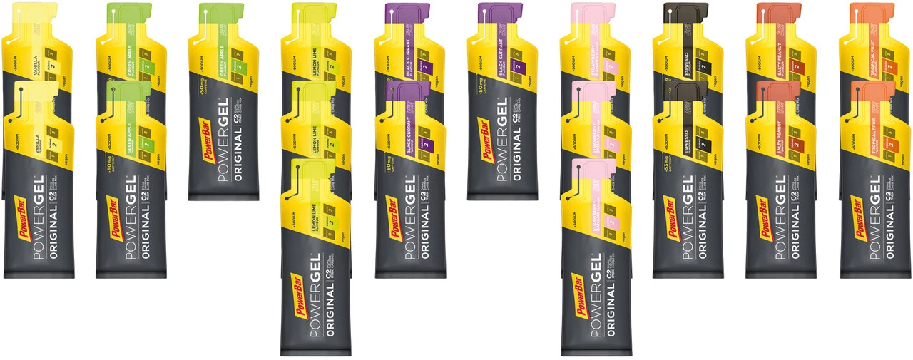 Vanilla:Konzentriertes Kohlenhydratgel für Sportler mit Natrium. (CH: Ergänzungsnahrung.) Vanille GeschmackStrawberry Banana:Konzentriertes Kohlenhydratgel für Sportler mit Natrium. (CH: Ergänzungsnahrung.) Erdbeer Banane GeschmackLemon Lime:Konzentriertes Kohlenhydratgel für Sportler mit Natrium. (CH: Ergänzungsnahrung.) Zitronen GeschmackSalty Peanut:Konzentriertes Kohlenhydratgel für Sportler mit Natrium. (CH: Ergänzungsnahrung.) Erdnuss GeschmackTropical Fruit:Konzentriertes Kohlenhydratgel für Sportler mit Natrium. (CH: Ergänzungsnahrung.) Tropische Früchte GeschmackBlack Currant – Caffeine:Konzentriertes Kohlenhydratgel für Sportler mit Koffein und Natrium. (CH: Ergänzungsnahrung.) Schwarze Johannisbeere GeschmackGreen Apple – Caffeine:Konzentriertes Kohlenhydratgel für Sportler mit Koffein und Natrium. (CH: Ergänzungsnahrung.) Grüner Apfel GeschmackEspresso – Caffeine:Konzentriertes Kohlenhydratgel für Sportler mit Koffein und Natrium. (CH: Ergänzungsnahrung.) Kaffee Geschmack