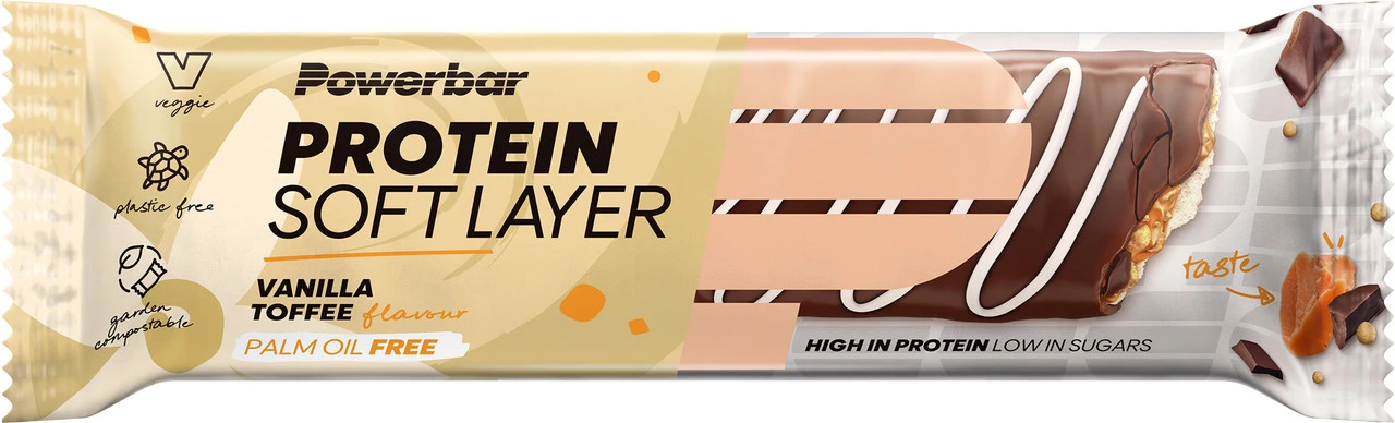 vanilla toffee:Eiweißriegel für Sportler, mit Crispies und Karamellgeschmack-Schicht (15 %), überzogen mit Milchschokolade, mit Süßungsmittel. Vanille Geschmack.Features:mit viel Proteinenthält nur wenig Zuckerohne Palmölkompostierbare Verpackungenthält kein Kollagenfür Vegetarier geeignetalle PowerBar Produkte sind zusätzlich auf der Kölner Liste® aufgeführtAnwendungshinweise des Herstellers:1 Riegel/Tag.