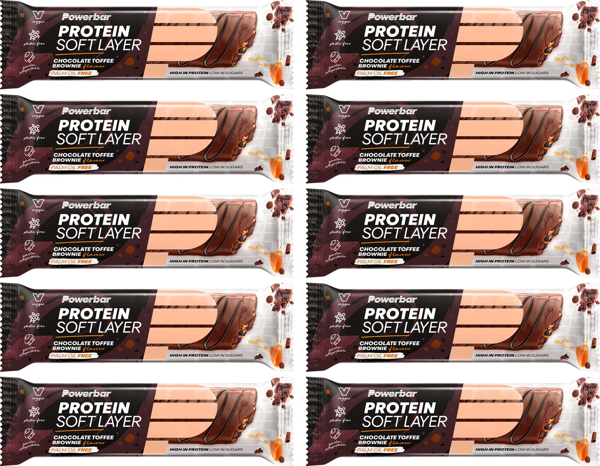 4 x Proteinriegel PowerBar Protein Soft Layer, chocolate toffee-brownie, Nettofüllmenge 160 g3 x Proteinriegel PowerBar Protein Soft Layer, strawberry-white chocolate, Nettofüllmenge 120 g3 x Proteinriegel Po