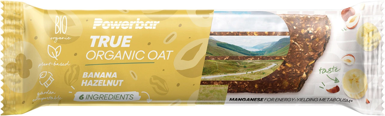 Mit den True Organic Oat Energieriegeln von PowerBar füllst Du unterwegs Deine Energiespeicher auf. Hierbei dient Hafer als Energiequelle. Mit maximal sechs rein pflanzlichen Zutaten aus biologischem Anbau sind die Riegel puristisch und geschmackvoll zugleich. Außerdem ist die Verpackung kompostierbar.