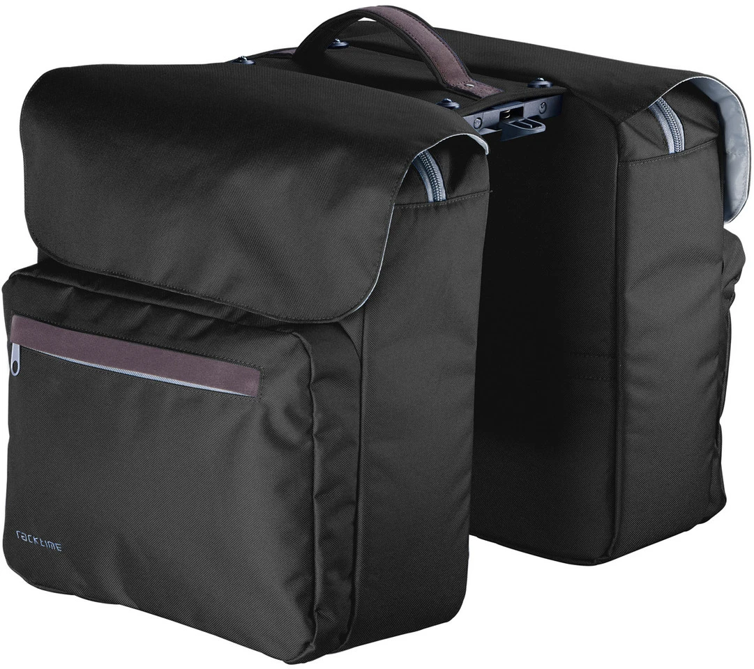 Spezifikationen:Einsatzbereich:Touring/Trekking, CityMaße (HxBxT):45 x 31 x 40 cmVolumen:24 + 5 LiterTechnische Daten:Material:PolyesterKompatibilität:Racktime System-Gepäckträger (Snap-it)Features:vormontierter Snapit-AdapterTragegriff mit verstärkten Streifen in Lederoptik, vernäht und genietetwasserabweisendes MaterialReflektorstreifen für mehr SicherheitHerstellernummern:carbon black:1000-001berry blue:1000-002lime green:1000-003Lieferumfang:1 x Doppelgepäcktasche Racktime Ture