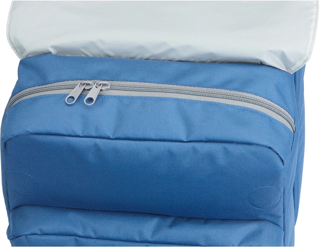 Eine Doppeltasche mit Reißverschluss und einem umklappbaren Deckel, der per Magnetverschluss praktisch von alleine hält, bietet dir jede Menge Platz. Für zusätzlichen Stauraum sorgen die Innen- und Außentasche mit Reißverschluss. Für den nötigen Tragekomfort sind die Tragegriffe in Lederoptik verstärkt und die Reflektorstreifen machen Ture nicht nur am Tage zum Eyecatcher.