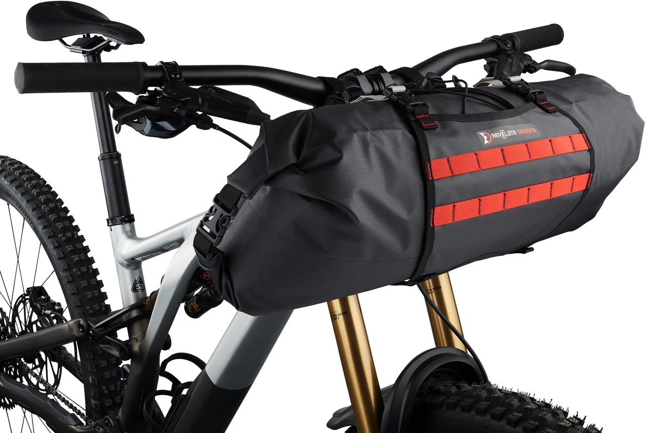 Die Relevate Designs Sweetroll Lenkertasche bietet Dir auf Deinen Bikepacking-Touren 15 Liter wasserdichtes Packvolumen. Sie ist von zwei Seiten zu befüllen und lässt sich über Rollverschlüsse optimal anpassen. Dank der Spacer zu Befestigung stellst Du den Abstand zum Lenker variabel ein. Dadurch vermeidest Du Scheuerstellen und sorgst für ausreichend Kabelfreiheit.