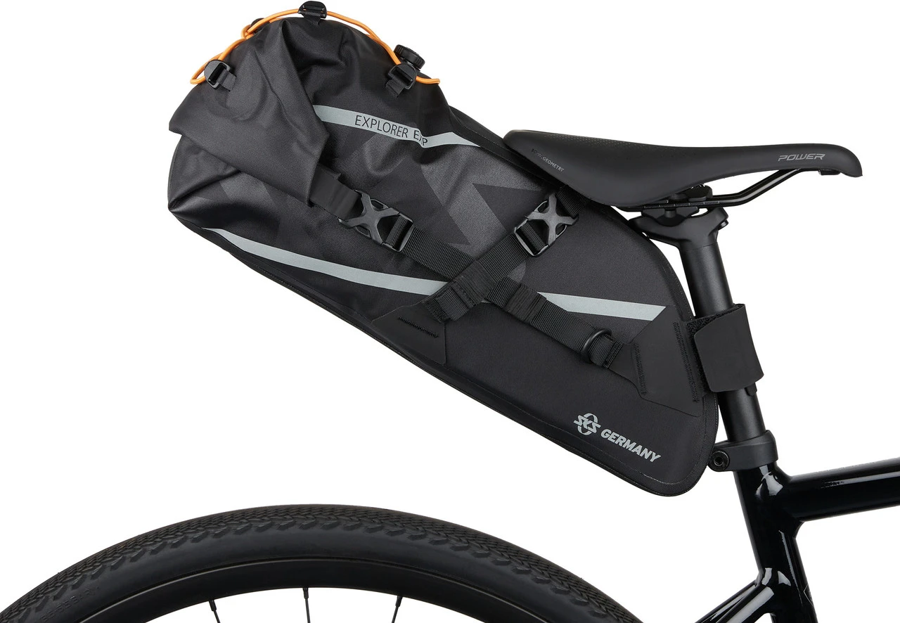 Spezifikationen:Einsatzbereich:Gravel, Touring & Trekking, All MountainAusführung:SatteltascheBefestigung:Klettverschluss, SattelstrebenMaterial:Polyester, PolyethylenMaße (HxBxT):345 mm x 575 mm x 165 mmVolumen:13 LiterFeatures:wasserdichtdurch Entlüftungsventil kannst Du Luft rauslassen und die Tasche kleiner zusammenrollenStauraum kann durch Gurte angepasst werdenansteckbares SchutzblechSchlaufen für Rücklichtzusätzliches Packnetzreflektierende ElementeFreigaben:Belastbarkeit max.:5 kgHerstellernummer:11672