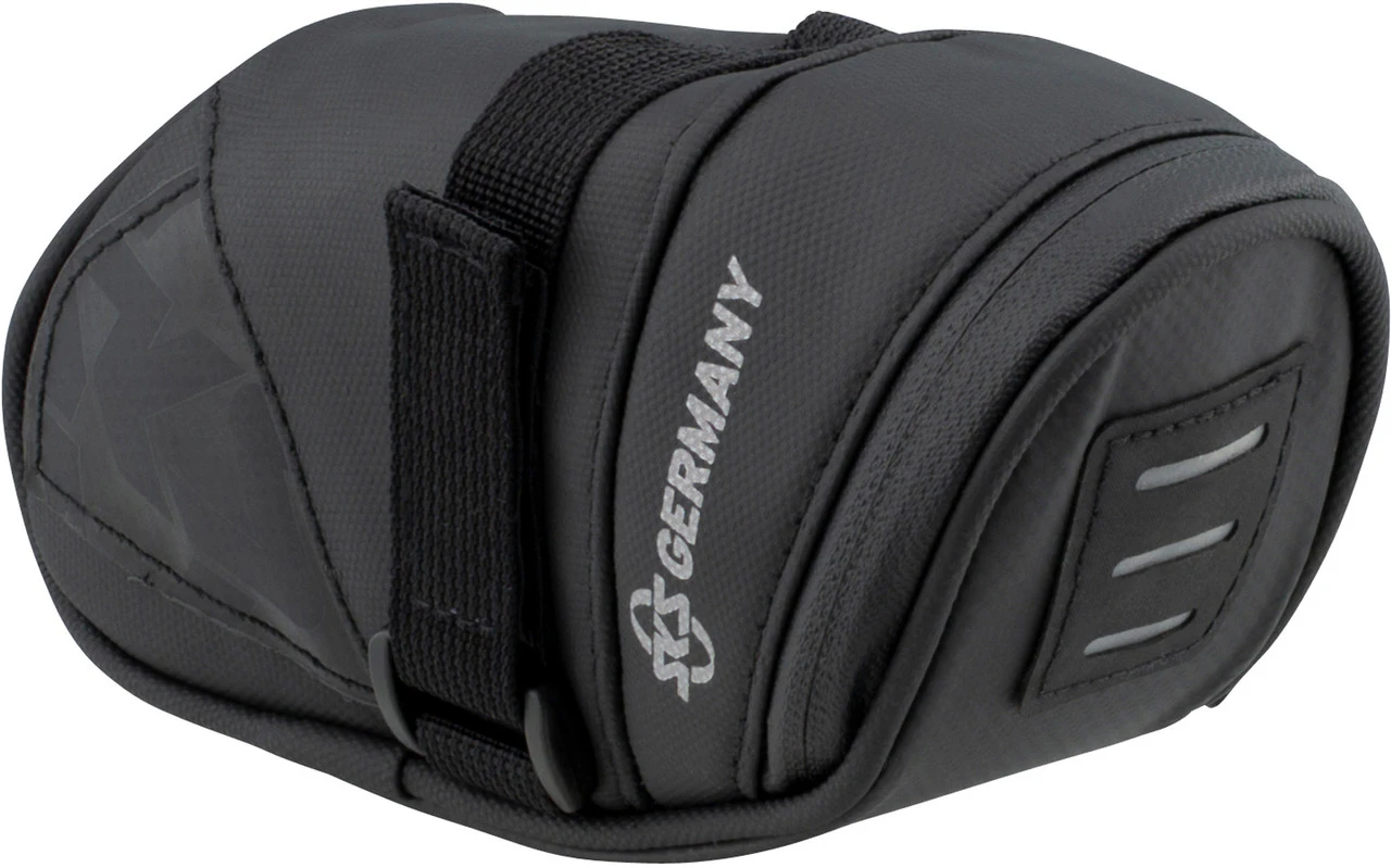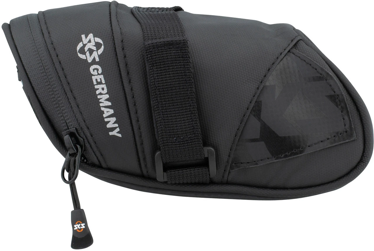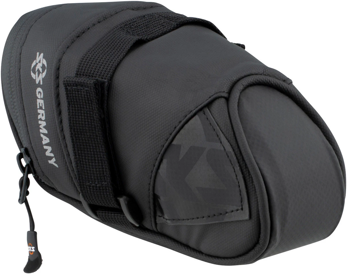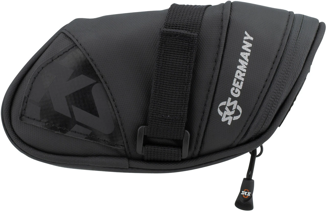 Die Explorer Straps 500 Satteltasche von SKS bietet Platz für kleine Werkzeuge oder Wertgegenstände und ist schnell am Sattel angebracht.