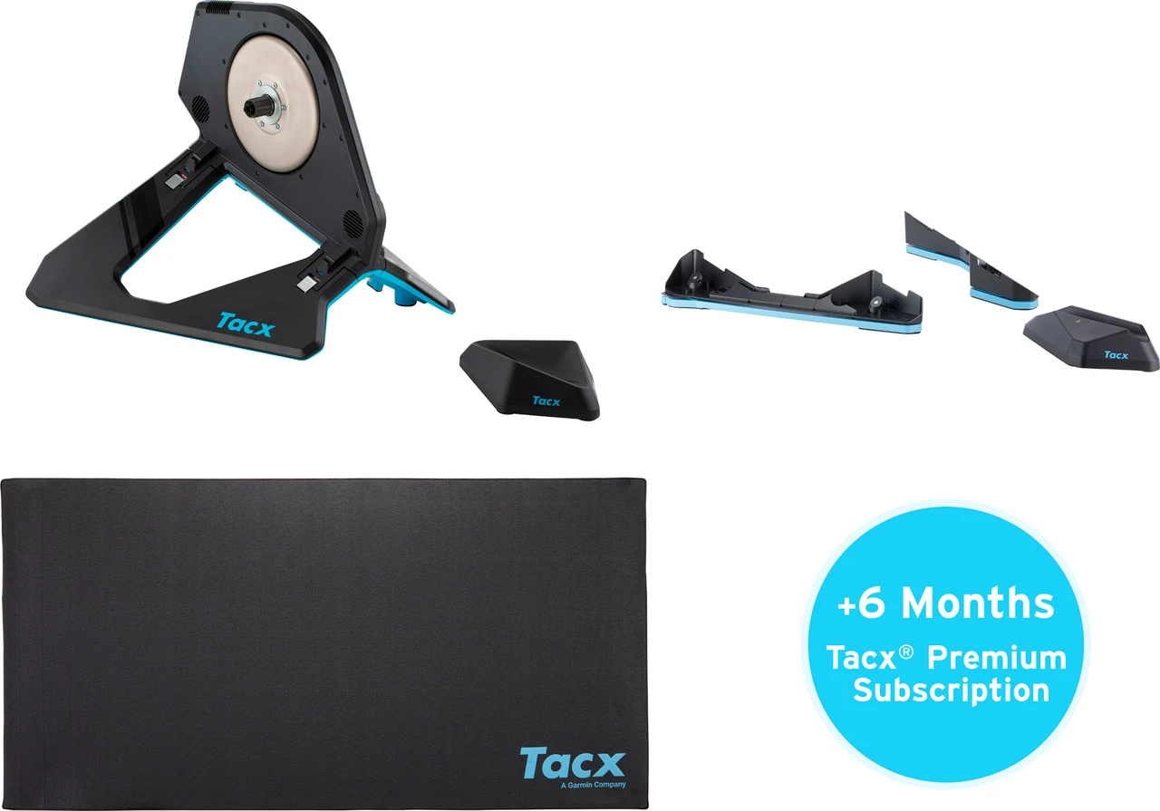 Dieses Tacx Bundle zum Indoor-Training enthält den Neo 2T Smart Rollentrainer, Motion Plates Füße, die Motion Vorderradstütze sowie eine Trainingsmatte. Außerdem erhältst Du einen Gutschein für ein 6-monatiges Tacx Premium-Abo. Diese Kombination bietet Dir ein halbes Jahr lang spaßiges Intensivtraining.