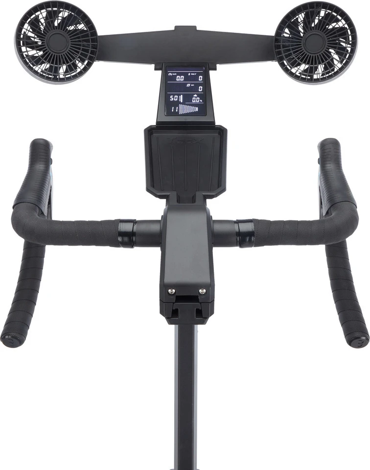 Spezifikationen:Ausführung:Rollentrainer mit DirektantriebWiderstandseinstellung:interaktivBremsleistung (max.):2200 WSimulierbare Steigung (max.):25 %Leistungsmessung:Ja, Genauigkeit < 1 %Datenübertragung:ANT+, BluetoothProtokolle:FE-C (Fitness-Equipment-Control), BluetoothTechnische Daten:Widerstandseinheit:MotorbremseWiderstandsstufen:stufenlosSchwungrad:virtuellAbfahrtssimulation:JaStromanschluss:110 – 240 V, eingeschränkter Betrieb auch ohne Anschluss möglichAbmessungen (L x B x H):1390 x 750 x 1170 mmFeatures:Smart-Bike für interaktives Rollentraining inklusive Bergabfahrtssimulationindividuelle Größeneinstellung von Stack, Reach und SitzhöheKurbel in fünf verschiedenen Längen nutzbar: 165,0 mm, 167,5 mm, 170,0 mm, 172,5 mm, 175,0 mminteraktive Ventilatoren zur Fahrtwindsimulationauch ohne externe Stromquelle mit vielen Funktionen nutzbarQ-Faktor: 147 mm, passend für Renn- und Triathlonradintegriertes 4,5 Zoll-Display zur Steuerung Deines Trainings2 USB-Anschlüsse mit Ladefunktionintegrierter Smartphone- und Tablethalterprogrammierbare Schaltgriffe zur Simulation Deiner bevorzugten AntriebsgruppePedaltritt-Analyseleise, präzise und leistungsstarkTechnologien:Bergabfahrtssimulation