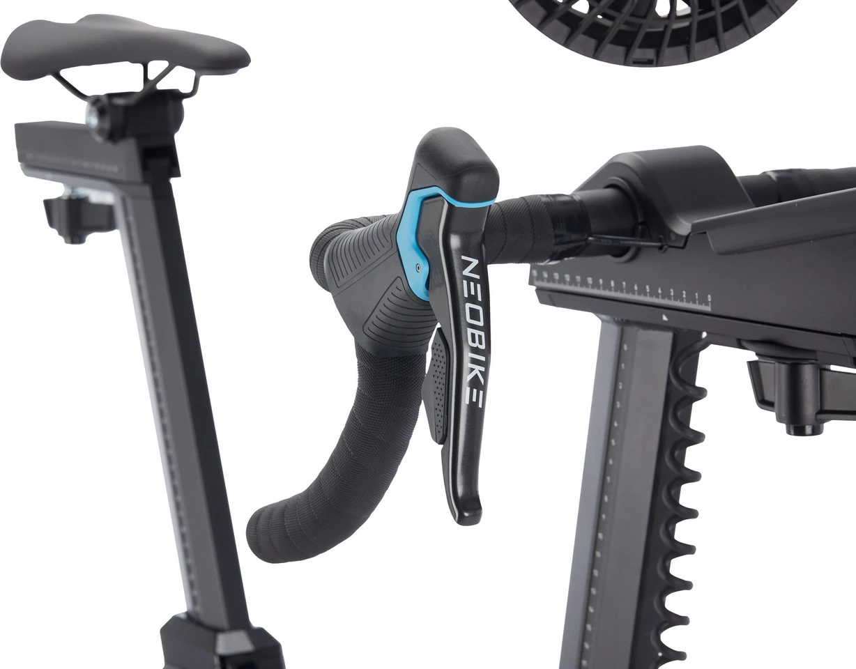 Der Neo Bike Plus Rollentrainer von Tacx ist ein Smart-Bike für interaktives Indoor-Training mit dem Gefühl, draußen zu fahren. Es ist individuell in Stack und Reach anpassbar und verfügt sogar über fünf Kurbellängen von 165 bis 175 mm. Außerdem sind die Schaltgriffe programmierbar, sodass Du auch auf der Rolle Deine favorisierte Antriebsgruppe nutzen kannst.