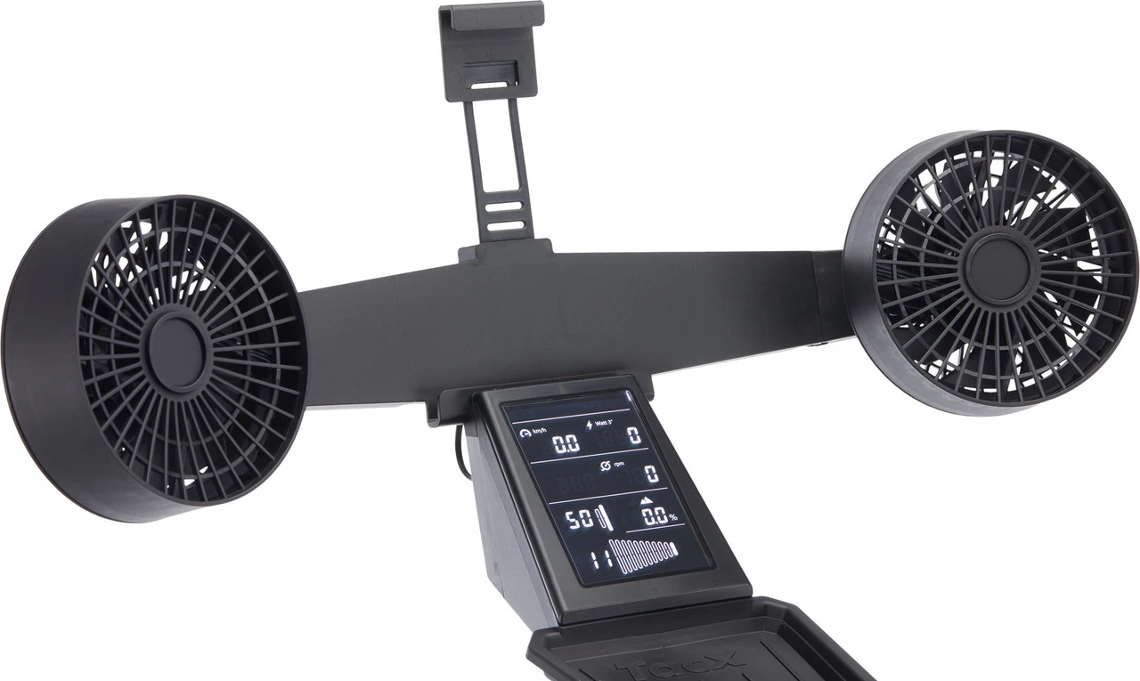 Besonders realistisch wird Deine Fahrt durch die Road-Feel-Simulation, die durch Vibrationen unterschiedliche Straßenuntergründe imitiert. Wenn es bei Deiner Indoor-Fahrt bergab geht, ist es nicht notwendig zu treten. Du kannst einfach rollen lassen. Geht es bergauf, simuliert das Neo Bike Plus Steigungen von bis zu 25 %. Die am Cockpit integrierten Ventilatoren kühlen Dich während Deines Trainings ab. Deine Trainings-App verfolgst Du einfach auf Smartphone oder Tablet, das in der dafür vorgesehenen Halterung unterkommt. Um es mit Strom zu versorgen, schließt Du es einfach an eine der beiden USB-Ladebuchsen an.