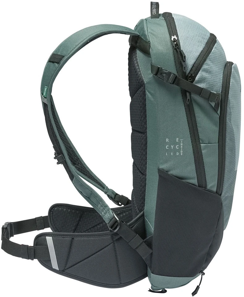 Spezifikationen:Einsatzbereich:Enduro, All MountainAusführung:AllroundrucksackVolumen:15 LiterTrinkblasenfach:2 LiterTechnische Daten:Material:600D PU, 300D Ripstop PU, 75D PU, 190T PUZuladung:0 – 4 kgFreigaben:Belastbarkeit max.:4 kgFeatures:MTB-Rucksack mit 15 Litern Fassungsvermögenseparates, großes HauptfachWerkzeugfach und herausnehmbarer Werkzeugorganizer im FrontfachtTrinkblasenfach mit Ausgang für TrinksystemReißverschlusstasche für Minipumpe, Brillenfach mit FleeceHelmhalterungNetztaschen an den SeitenErgo-Shape-Tragegurte und Vent-Active-Tragesystem für viel Komfort und gute Lastverteilungbreiter Hüftgurt: atmungsaktiv, gepolstert mit separater TascheBrustgurt zur Stabilisierung des RucksacksKompressionsgurte an den Seitenzu einem Großteil aus recyceltem Materialseparate Halterung für Blinklichtreflektierende Detailswasserabweisendes Eco Finishklimaneutrale FertigungTechnologie:Vent Active