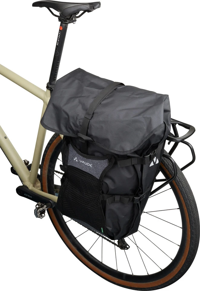 Spezifikationen:Einsatzbereich:Gravel, Touring & TrekkingAusführung:Hinterrad, GepäckträgerMaterial:400D Polyurethan, Econyl®Maße (HxBxT):40 cm x 36 cm x 13 cmVolumen 21 Liter